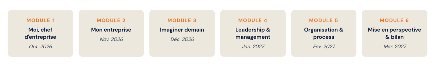 À chaque module : des outils concrets, des matrices exploitables, du travail sur vos situations réelles.